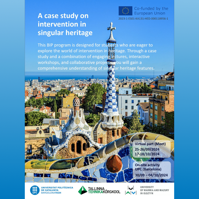 ¿Sabes que puedes realizar un ERASMUS, reducido en tiempo y costes, participando en un BIP? Aquí en la EPSEB estamos organizando un sobre Intervención en Patrimonio Singular. El objetivo principal de este programa es que el estudiantado que participe pueda trabajar todos los elementos previos relevantes de cara a una intervención en un edificio con valor patrimonial (elementos históricos, constructivos, gráficos, de confort y de funcionalidad). Y esto lo haremos sobre uno de los edificios de La Maternidad aquí en Barcelona (https://www.diba.cat/web/recintes/maternitat) junto con 10 estudiantes de la TTK University of Applied Sciences de Tallin (Estonia) y 10 de la University of Warmia and Mazury in Olsztyn (Polonia), con un espíritu de trabajo cooperativo e internacional.